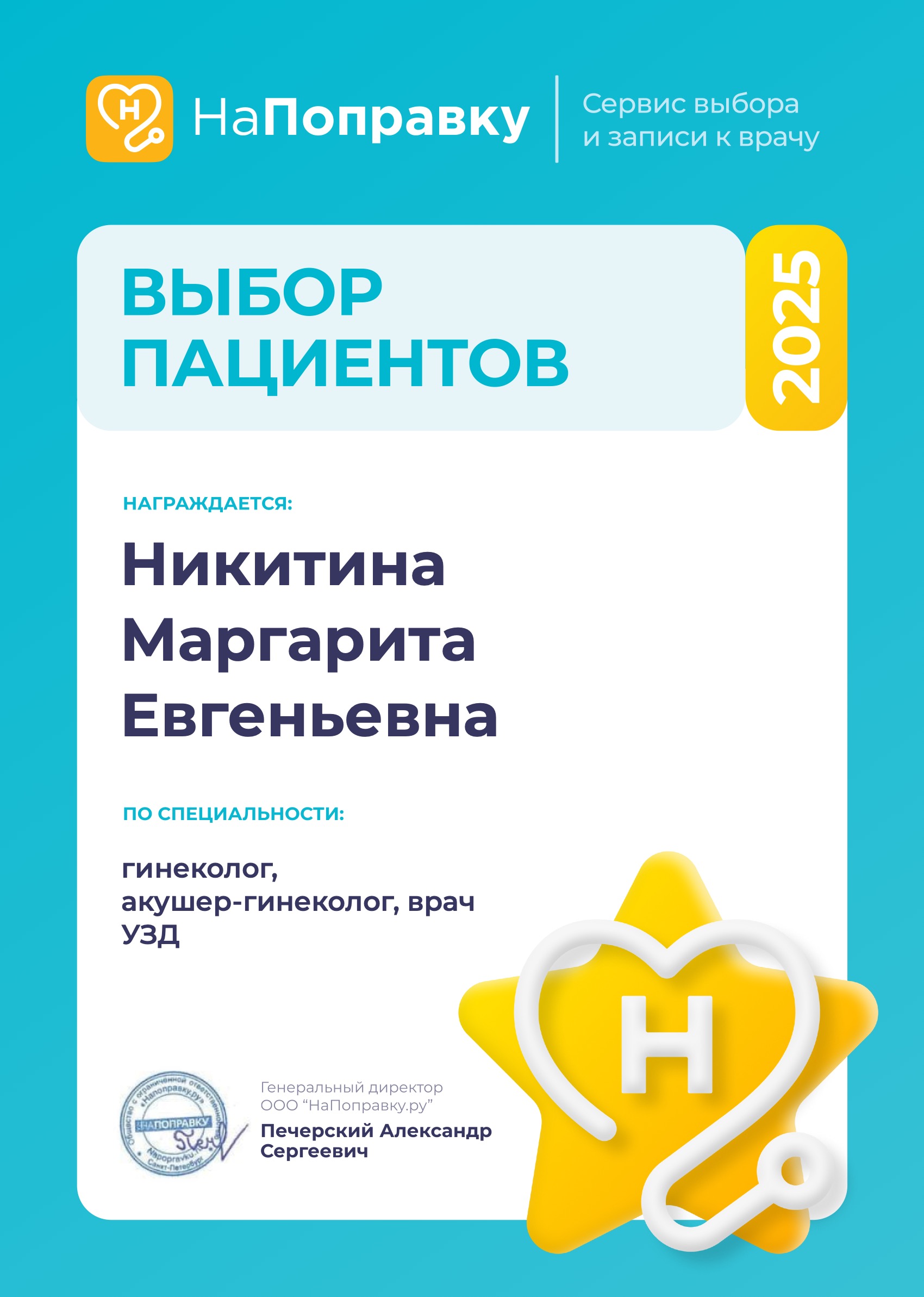 - акушер-гинеколог, врач УЗД НИКИТИНА МАРГАРИТА ЕВГЕНЬЕВНА,