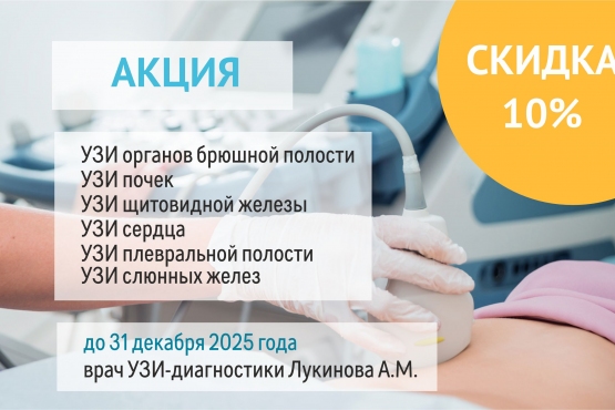 Дата публикации 2 октября 2025 годаСКИДКА 10% НА УЛЬТРАЗВУКОВУЮ ДИАГНОСТИКУ